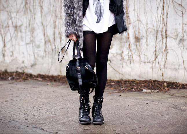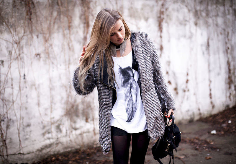 Stradivarius not real fur / boots H&M kids / Blouse StaffByMaff / jewellery Cocktailme / bracelets RockLove / shorts and black jacket second hand / bag Romwe