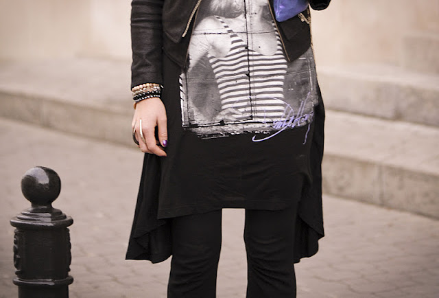 Gatta scarf / modekungen jacket / jewellery Romwe rings / DeeZee black wedges / RockLove and CandyCrystal bracelets / pants H&M / amplified dress-blouse sinfashion.pl /handbag trendsetterka